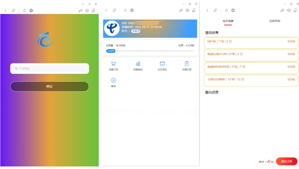 管理物联卡 用量记录、套餐封装、在线信息获取、智能诊断、分组备注、企业代理管理、预存、充值、返利 等。