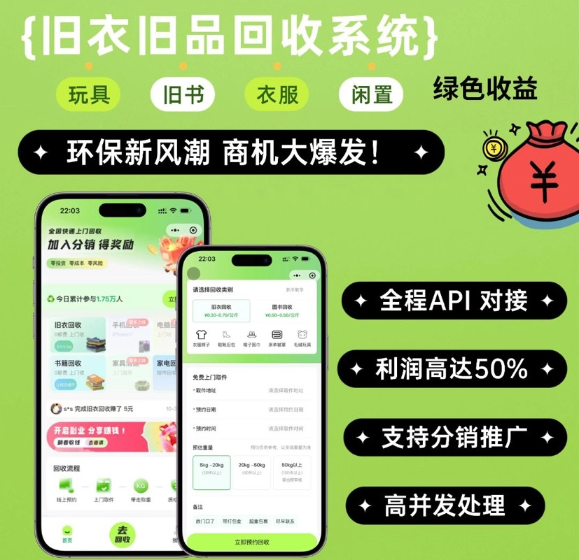这是一款该旧物回收系统采用 GO 语言与 MySQL 5.7 技术栈构建,具备高稳定性与低维护成本。系统已集成第三方回收渠道对接功能,用户端小程序支持预约、定价等核心模块,无需二次开发即可快速部署。适合旧物回收创业或业务扩展场景,兼顾实用性与易用性。