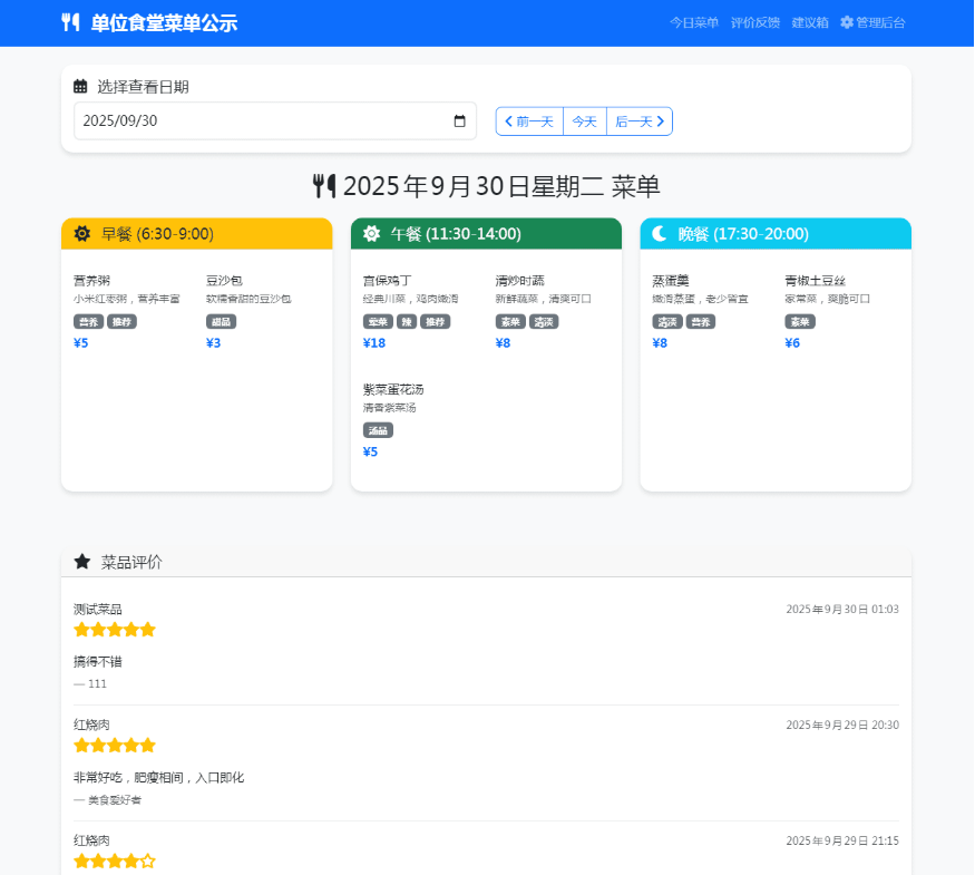 餐厅食谱菜单公示系统源码 餐饮食品展示源码 餐饮评价系统源码